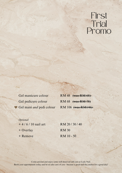 We have an exciting offer for your first visit in Lady Nail. Just for you!*